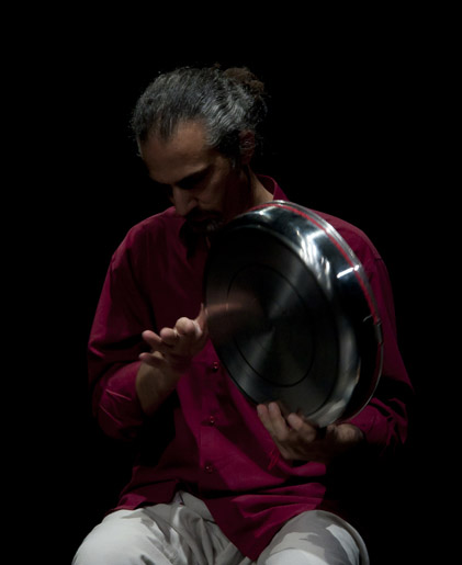 Enchanting Circles (Alfa Music 2011), his first solo recording for tuned frame drums (created by himself), rattles and voice results from his research on frame drums while other aspects of his research on sound and musical instruments have found expression in FREE-DOT, a project of improvised music which he runs together with the flutist Antonio Cotardo; they published Ariband (Slam 2010), a suite for flutes, frame drums, mbira and voice, Just Flux! (Slam 2013) an improvised session for flutes, berimbao, mbira, Jew’s harp, a set of stones, steel lids, bells, nuts, reed and shell rattles, voice and the piano, played directly from the strings and used as resonant witness, and Echoes (Sutra Arti Performative 2016) a journey through five pieces for flutes, mbira, axis, steel lids, mouth harp, rattles and voice.